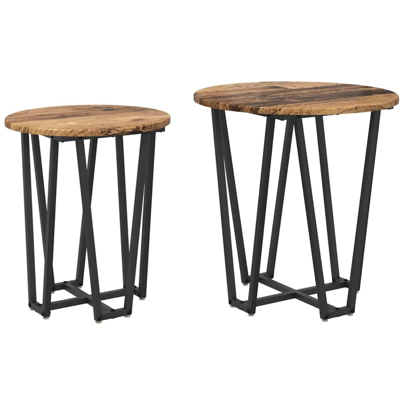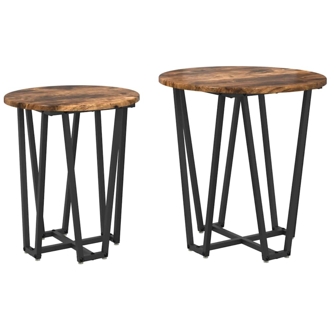 Deze Set van Bijzettafels in Bewerkt Hout heeft de typische industriële stijl en combineert ruwe materialen met een functionele uitstraling. De set bestaat uit twee multifunctionele tafels, ideaal voor een loftachtige woonkamer. Met hun ronde vorm passen ze perfect in verschillende meubelindelingen, terwijl het bewerkte hout en de metalen frames zorgen voor duurzaamheid en een moderne uitstraling.