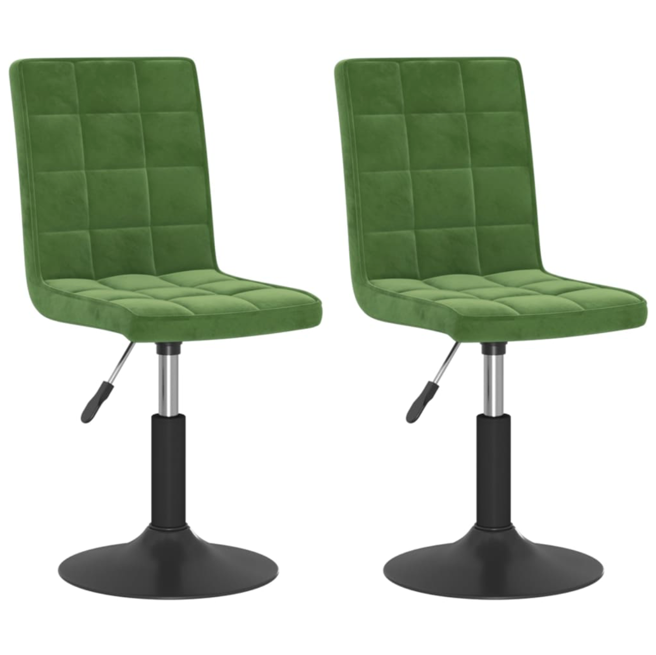 Deze stoelen zijn bekleed met zacht aanvoelend fluweel en bieden je optimaal zitcomfort. Ze zijn perfect om heerlijk te dineren, te lezen of te relaxen. Het zwart gepoedercoat stalen frame zorgt voor veel stevigheid. Dankzij het gasveermechanisme zijn de zittingen in hoogte verstelbaar. De stoelen zijn ook 360 graden draaibaar.